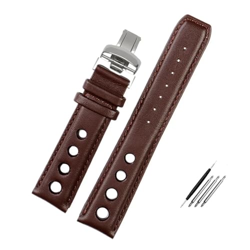 HuanJ Bracelet En Cuir Véritable Compatible Avec La Montre De Sport Tissot 1853 Racing PRS516 T91, Couche Supérieure En Cuir De Vachette, 20 Mm, Accessoires For Bracelet Chopin(Brown white SR)