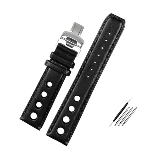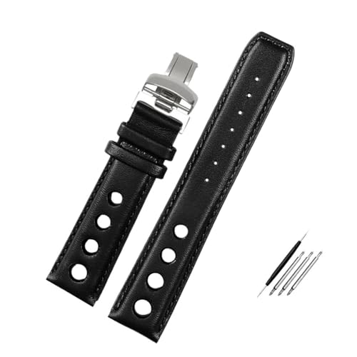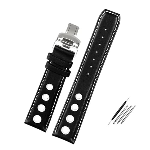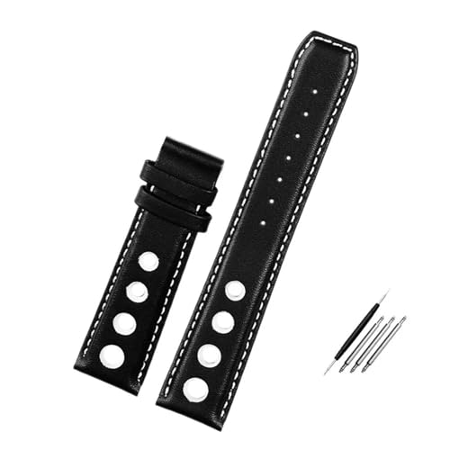 JVEIWAD Bracelet en cuir compatible avec la montre Tissot 1853 Sport Strap Racing PRS516 T91 1853, couche supérieure en cuir de vache 20 mm, accessoires(Black white-silver)