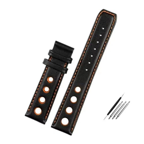 JVEIWAD Bracelet en cuir compatible avec la montre Tissot 1853 Sport Strap Racing PRS516 T91 1853, couche supérieure en cuir de vache 20 mm, accessoires(Black orange-No)