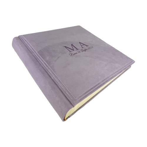 Album photo artisanal élégant en tissu Alcantara, personnalisable avec gravure. Idéal pour mariage, anniversaire, communion, baptême, tous les événements (Lilas)