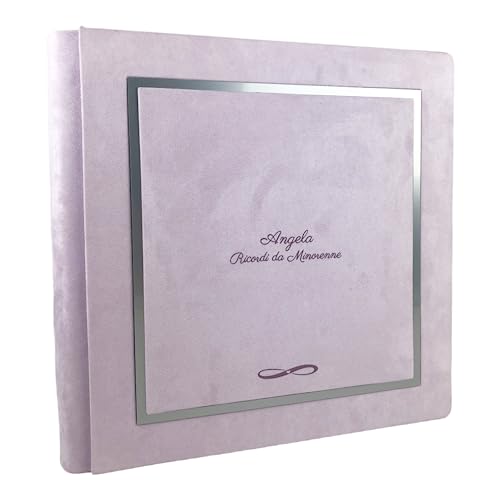 Album photo élégant en tissu Alcantara, différentes couleurs, personnalisable avec gravure. Idéal pour tout événement (Lilas)