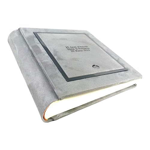 Album photo élégant en tissu Alcantara, différentes couleurs, personnalisable avec gravure. Idéal pour tout événement (Gris)
