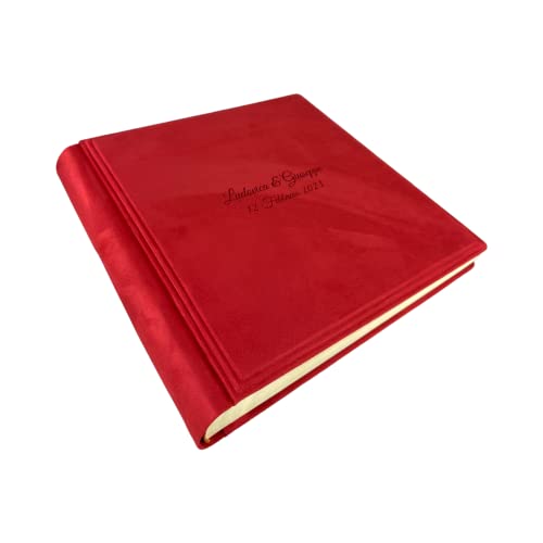 Album photo élégant en tissu Alcantara, différentes couleurs, personnalisable avec gravure. Idéal pour tout événement (Rouge)