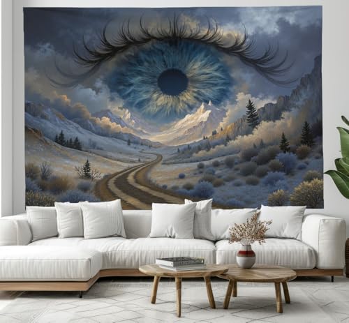 JRISEMECY Tapisserie Murale Ciel Fantastique Tenture La Grande Paysage Mystérieux Deco Tenture Murale Poster 3D Effet Bleu-Gris Peinture Murales Tissu Estampes Pour Chambre Salon 230X150Cm