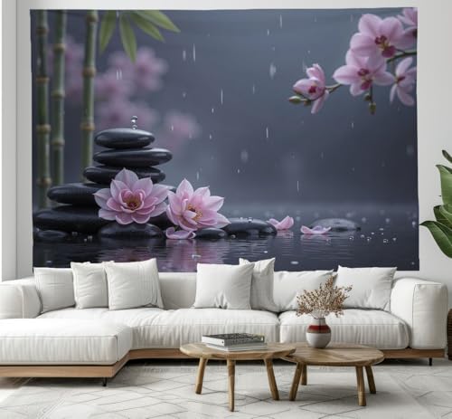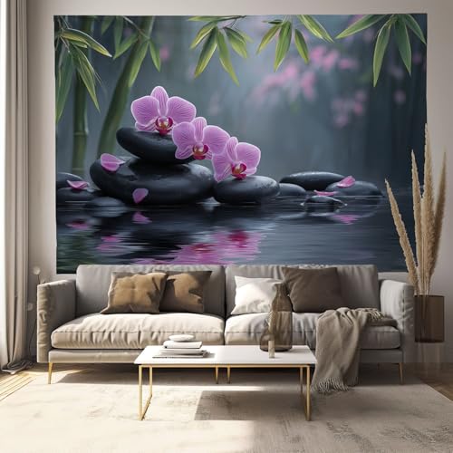 Tapisserie Murale Paysage Naturel D'Inspiration Zen Tenture La Grande Orchidées Bambous Lacs Deco Tenture Murale Poster 3D Effet Verdure Peinture Murales Tissu Estampes Pour Chambre Salon 150X100Cm