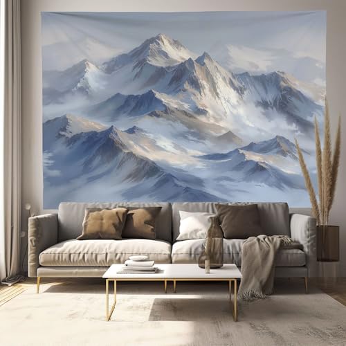 Tapisserie Murale Paysage De Montagne Enneigé Et Brumeux Tenture La Grande Esthétique Aquarelle Deco Tenture Murale Poster 3D Effet Gris Peinture Murales Tissu Estampes Pour Chambre Salon 150X100Cm