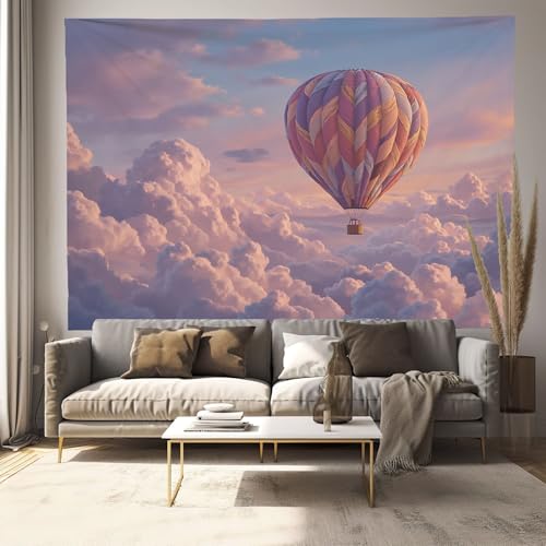 Tapisserie Murale Nuages Oniriques Montgolfières Tenture La Grande Paysage Céleste Deco Tenture Murale Poster 3D Effet Couleurs Pastel Peinture Murales Tissu Estampes Pour Chambre Salon 230X180Cm