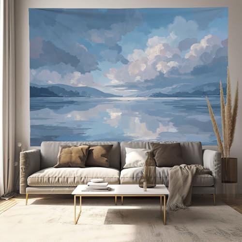 JRISEMECY Tapisserie Murale Lac Reflet Ciel Tenture La Grande Paysage Abstrait Deco Tenture Murale Poster 3D Effet Bleu Profond Peinture Murales Tissu Estampes Pour Chambre Salon 200X150Cm
