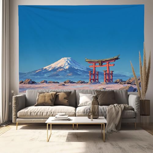 Tapisserie Murale Paysage Japonais Mont Fuji Tenture La Grande Porte Torii Traditionnelle Deco Tenture Murale Poster 3D Effet Ciel Bleu Peinture Murales Tissu Estampes Pour Chambre Salon 100X75Cm