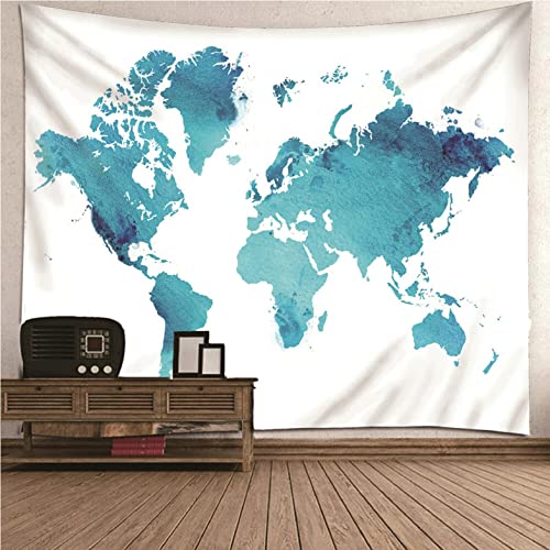 Isdreem Tapisserie Art Tableau Décoration Murale Moderne Carte Du Monde Sur Thème Minimalisme Salon Tenture Deco Blanc Bleu Décorations Murales Tissu Pour Couvertures 300x250cm