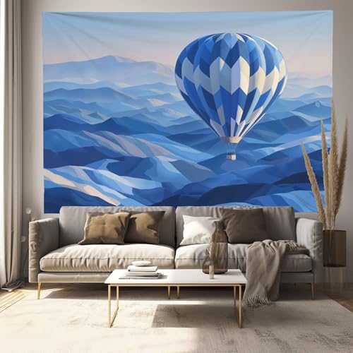 Tapisserie Murale Montgolfières Géométriques Montagnes Tenture La Grande Paysage Moderne Deco Tenture Murale Poster 3D Effet Bleu Marine Peinture Murales Tissu Estampes Pour Chambre Salon 150X130Cm