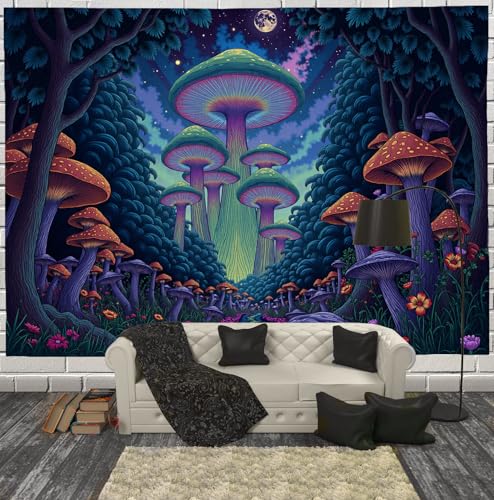 Tapisserie Murale Champignons Psychédéliques Arbres Tenture La Grande Galaxie Planétaire Deco Tenture Murale Poster 3D Effet Noir Peinture Murales Tissu Estampes Pour Chambre Salon 150X130Cm