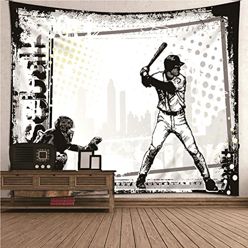Isdreem Tapisserie Panoramique Décoration Murale Tenture Base-Ball Tapisserie Deco Coloré Blanc Rouge Décorations Murales Tissu Pour Couvertures 300x250cm