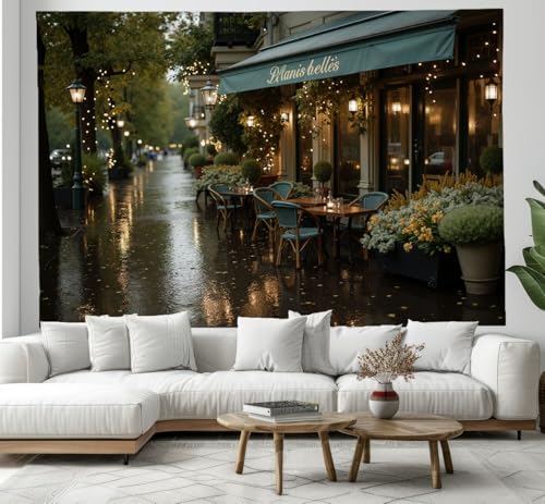 JRISEMECY Tapisserie Murale Cafés De Rue Romantiques Tenture La Grande Paysage Rétro Deco Tenture Murale Poster 3D Effet Vert Foncé Peinture Murales Tissu Estampes Pour Chambre Salon 150X130Cm