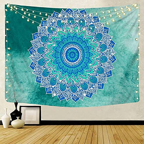 LNXSESN Tenture Murale Mandala Turquoise Tapisserie Murales Polyester Decoration Chambre Deco Chambre Aesthetic Salon Tapisserie Murale Toile Murale Tapisserie Murale Tissu 150x200cm