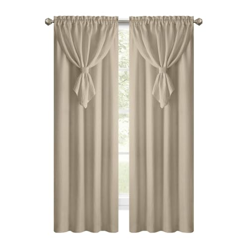ACHIM Allegra Rideau de fenêtre avec cantonnière attachée en forme de goutte – 106,7 cm de large, 213,4 cm de long, passe-tringle de 5,1 cm – Taupe – Tissu filtrant la lumière ultra doux et lavable en