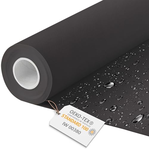 DreamRoots Tissu imperméable extérieur au metre 160 cm Largeur - Toile exterieure impermeable 100% de polyester 600D 220g/m - Tissus au metre ameublement Black mètre linéaire