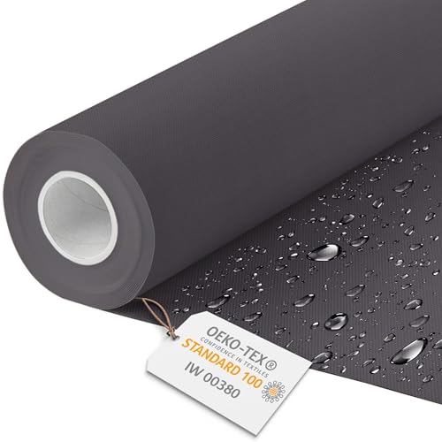 DreamRoots Tissu imperméable extérieur au metre 160 cm Largeur - Toile exterieure impermeable 100% de polyester 600D 220g/m - Tissus au metre ameublement Charcoal mètre linéaire