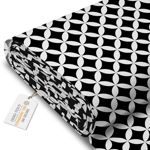 DreamRoots Tissu imperméable extérieur au metre 160 cm Largeur - Toile exterieure impermeable 100% de polyester 600D 220g/m - Tissus au metre ameublement Black Geometric Rhombus mètre linéaire