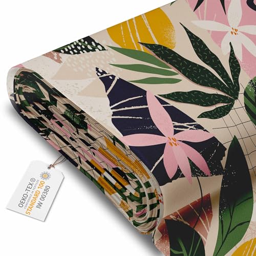 DreamRoots Tissu imperméable extérieur au metre 160 cm Largeur - Toile exterieure impermeable 100% de polyester 600D 220g/m - Tissus au metre ameublement Artistic Abstract Art mètre linéaire