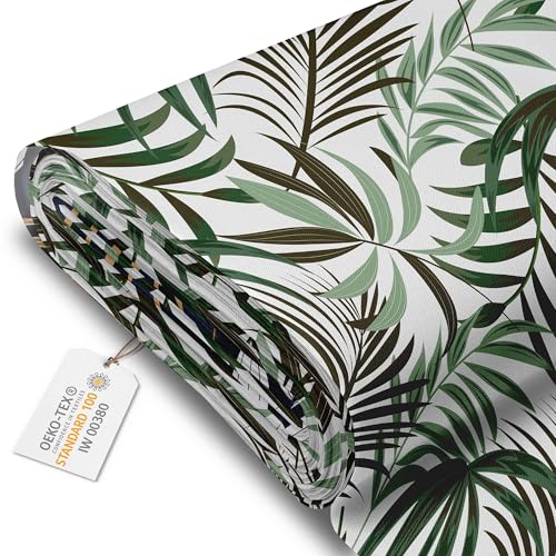 DreamRoots Tissu imperméable extérieur au metre 160 cm Largeur - Toile exterieure impermeable 100% de polyester 600D 220g/m - Tissus au metre ameublement Botanical Leaves 1M