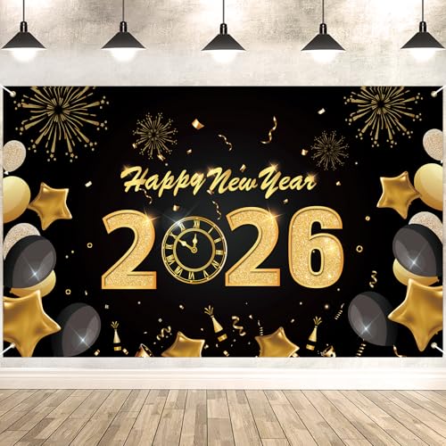 DPKOW Grande Bonne Année Bannière pour 2026 Nouvel an Décoration, Nouvel an Intérieur Maison Toile de Fond Décoration Affiche Mur, Tissu 185 * 110cm