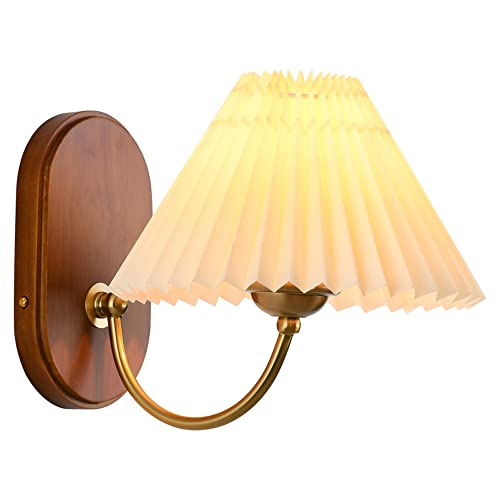 Jadssox Applique Murale en Bois Abat-Jour en Tissu Abat-Jour Mural Moderne, Appliques murales élégantes E27 luminaires de tête de lit, Chevet de la Chambre Salon Lampes murales câblées