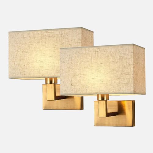 JHYPVII Applique Murale Doré Lot de 2 avec Interrupteur à Tirette Lampe Murale Chambre avec Abat-Jour en Tissu Luminaire Mural Interieur Lampe de Chevet Murale, Max 60W, Ampoule Non Incluse