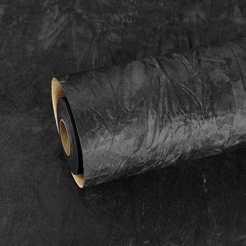 ReWallpaper Papier Peint Floqué Velours Noir Adhesif pour Meuble Vintage 44.5cm×2m Papier Peint Épais Papier Adhesif Velour Autocollant Tissu Mural Doublure Floquée pour Tiroir Boîte à Bijoux