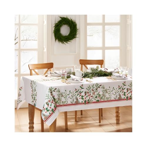 Benson Mills Merry Ribbons Nappe de Noël en Tissu Jacquard imprimé, Nappe de Noël élégante pour Toutes Les Vacances et l'hiver (rectangulaire 152,4 x 213,4 cm)