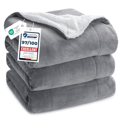 Bedsure Plaid Polaire Sherpa Couverture - Douce et Chaude Double Face avec Fourrure d'agneau et Tissu Polaire pour Canapé et Lit, 2 Personnes, Épais - XL 130x150 cm, Gris