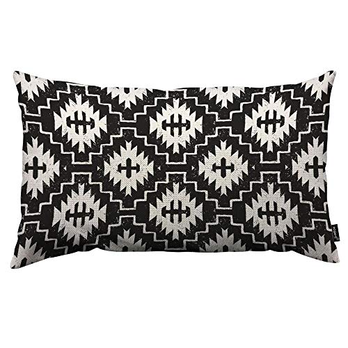 HOSNYE Housse de coussin aztèque à motif ethnique avec motifs américains en noir et blanc, tissu en lin pour canapé, lit, canapé, voiture, housse de coussin 30,5 x 50,8 cm