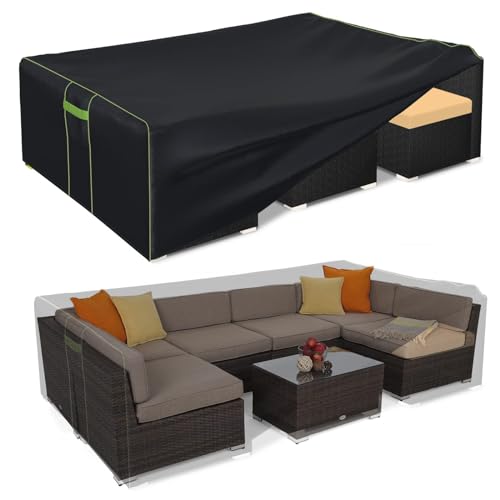 HIGHTQURO Housses de meubles de patio en tissu Oxford imperméable pour canapé sectionnel d'extérieur – Housses de table et de chaises d'extérieur – 320 x 320 x 71 cm (L x l x H)