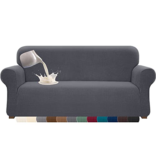 Cherrypark Housse de canapé imperméable Super Douce en Tissu Jacquard élasthanne pour canapé 4 Places, Protection de Meubles antidérapante avec Bande élastique et Mousse (Taille XL, Gris)