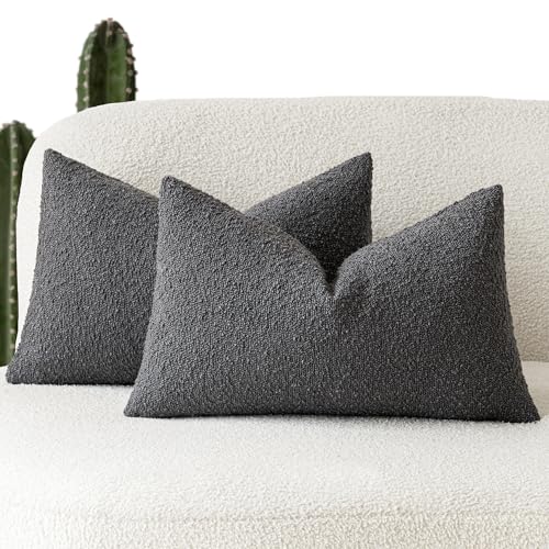 Foindtower 2 Housses de Coussin Lombaire décoratives texturées, tissées en Tissu Bouclette uni, pour canapé, décoration de Salon, Gris foncé, 30 x 50 cm