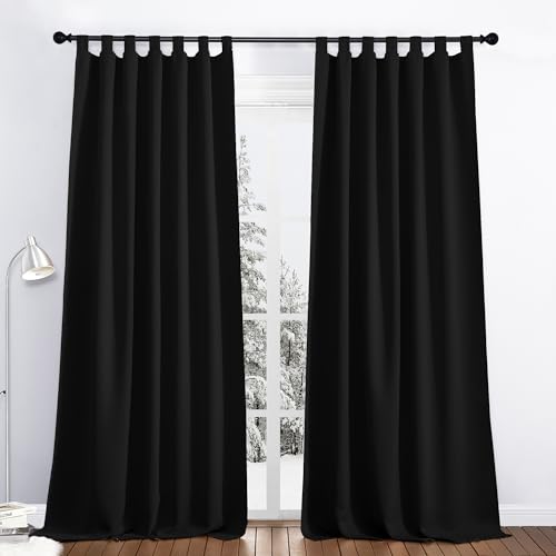 PONY DANCE Rideau et Draperies - Décoration de Fenêtre Isolation Thermique Lumineux Bloquer pour Maison Chambre Tissu Panneux à Oeillets pour Enfant/Adulte, 140 X 245 cm, Noir, 2 Pcs