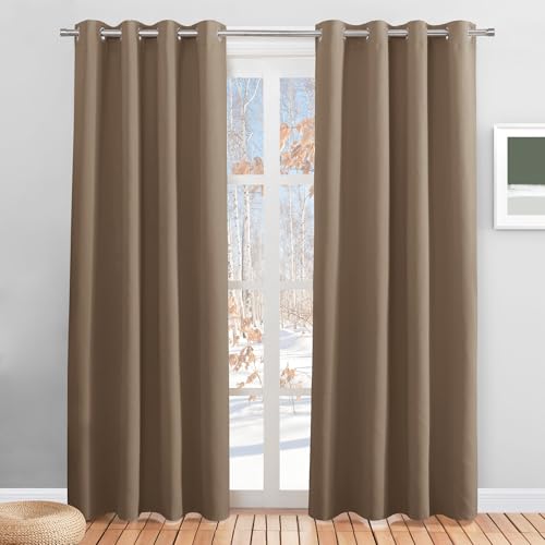PONY DANCE Rideau Thermique à Oeillets - Rideaux de Fenêtre Occultants Draperies Prêt à Poser Tissu Solid pour Enfants Uni Lumineux Bloquer, 132 x 158 cm, Cappuccino, 2 PCs