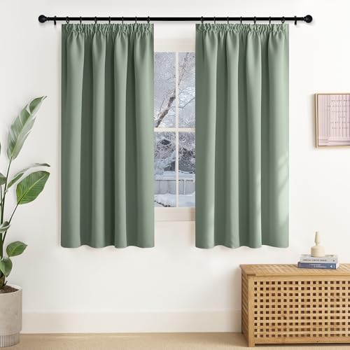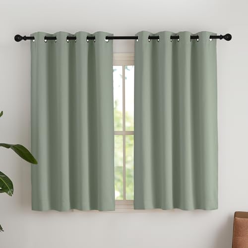 NICETOWN Rideaux Occultants Thermique Court, Décoration de Fenêtre Rideau Draperies à Oeillets Isolation Lumineux Tissu pour Maison Chambre, L 140 x H 145 cm, Sauge Vert, Lot de 2