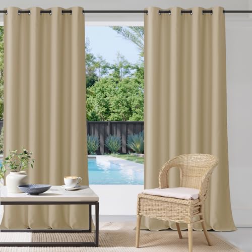 StangH 1 Rideau d'extérieur Beige imperméable – Tissu lesté occultant à Isolation Thermique avec œillets pour Porche, Salle à Manger en Plein air, Beige crème, 132,1 x 213,4 cm (l x L)