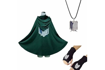 Set de 3 pièces Cape Gants Pendentif Attack on Titan Liberty Wing Captain Cosplay Vert M(160-170cm)