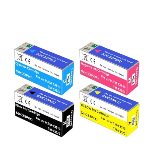 ZHAOXCAIN Cartouche à Encre Pigment sjic22p Compatible avec Le modèle d'imprimante d'étiquette TM-C3500 C3500 C33S020577 SJIC22P K(SJIC22P 4Color 1set)