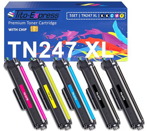 TN-243cmyk TN247 TN 247 XL Lot de 5 cartouches de toner compatibles avec Brother MFC-L3750CDW MFC-L3770CDW MFC-L3730CDN DCP-3510CDW DCP-L3550CDW HL-L3270CDW HL-L3210CW TN243CMYK Noir, Magenta, Jaune