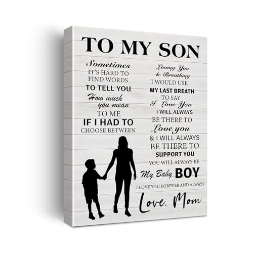 poster To My Son Wall Art Canvas Print, Rustic I Love You Forever Quote, Gift From Mom and Dad, Inspirational Decor for Boys Room Home(Framed,12x18inch(30x45cm))