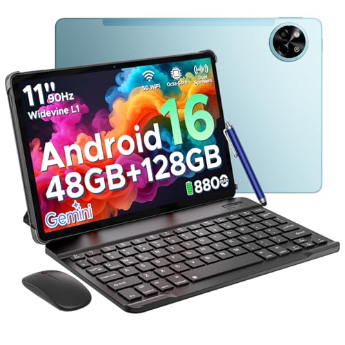 POPUX P11 Tablette Android 16, Tablette 11 Pouces avec Gemini AI, 48Go RAM+128Go ROM/2To TF, T7250, 90Hz Display 8800mAh Tablettes avec Clavier, Stylet, 13MP+5MP, 3.5mm Casque Audio, 5G WiFi, Bleu