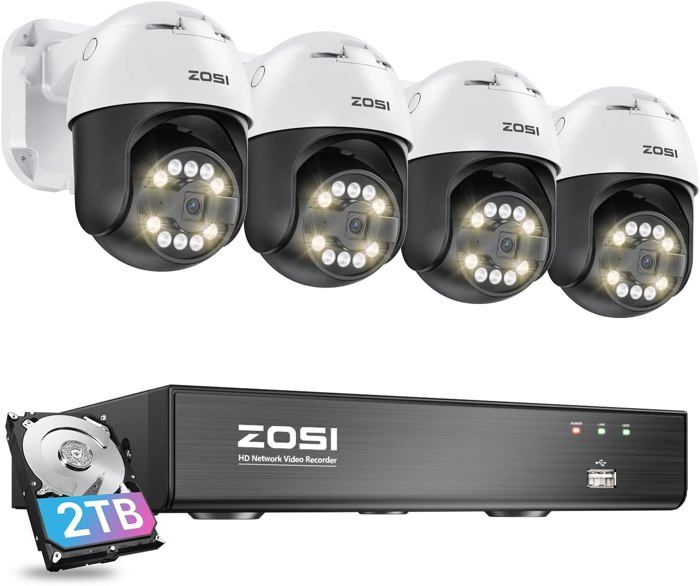 ZOSI 8CH 4K 2To NVR Kit Caméra de Surveillance PoE Détection de Personne/Visage/Véhicule Vidéo FHD 30 IPS 5MP 3K Caméra
