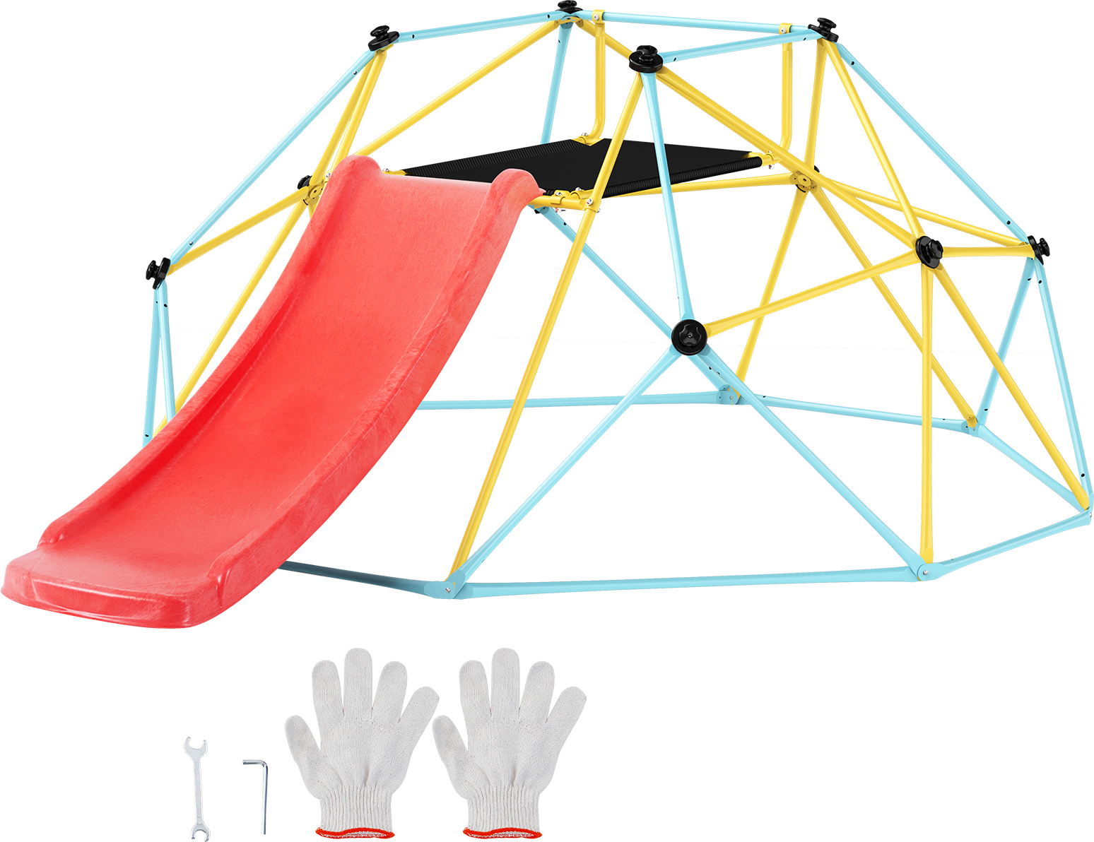 VEVOR Dôme à grimper, 2,44 m de structure géométrique à grimper avec toboggan, pour enfants de 3 à 9 ans, structure à grimper 272 kg de charge, avec prise d'escalade, jeu d'intérieur/d'extérieur idéal arrière-cour