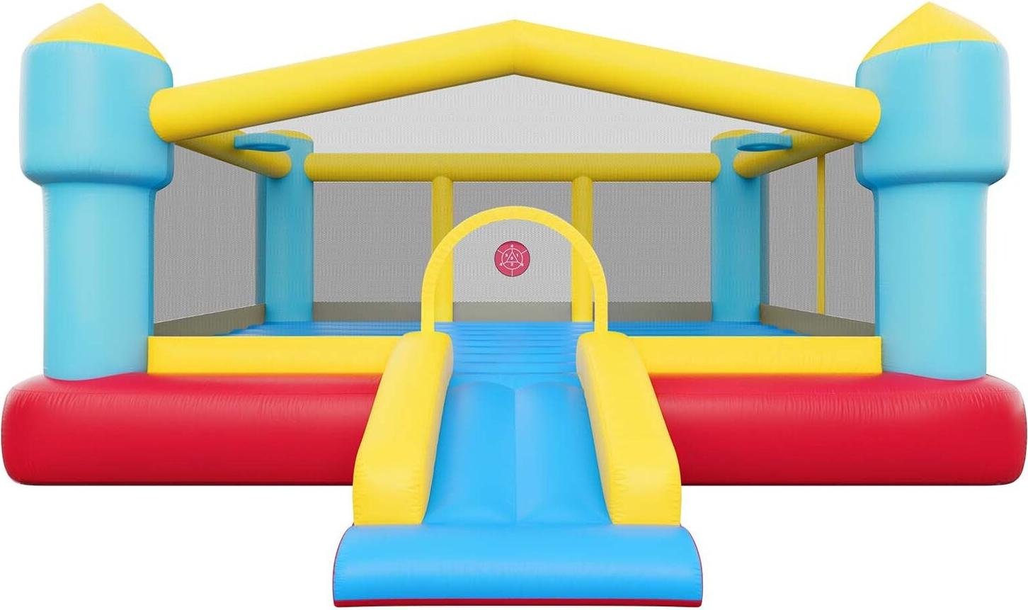 Château gonflable, 4,5 x 4,2 x 2 m, château gonflable avec toboggan, panier de basket, jeu de cible et aire de saut, peut accueillir 3 à 4 enfants (âgés de 3 à 8 ans)