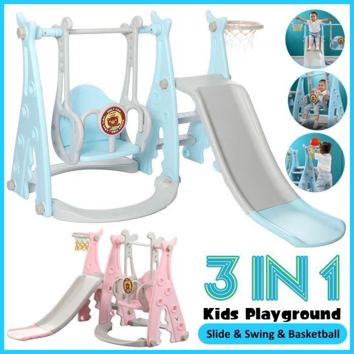 Toboggan et Balançoire pour Enfants avec Panier de Basket et Basketball Toboggan pour Enfants Balancoire Bébé (Bleu)