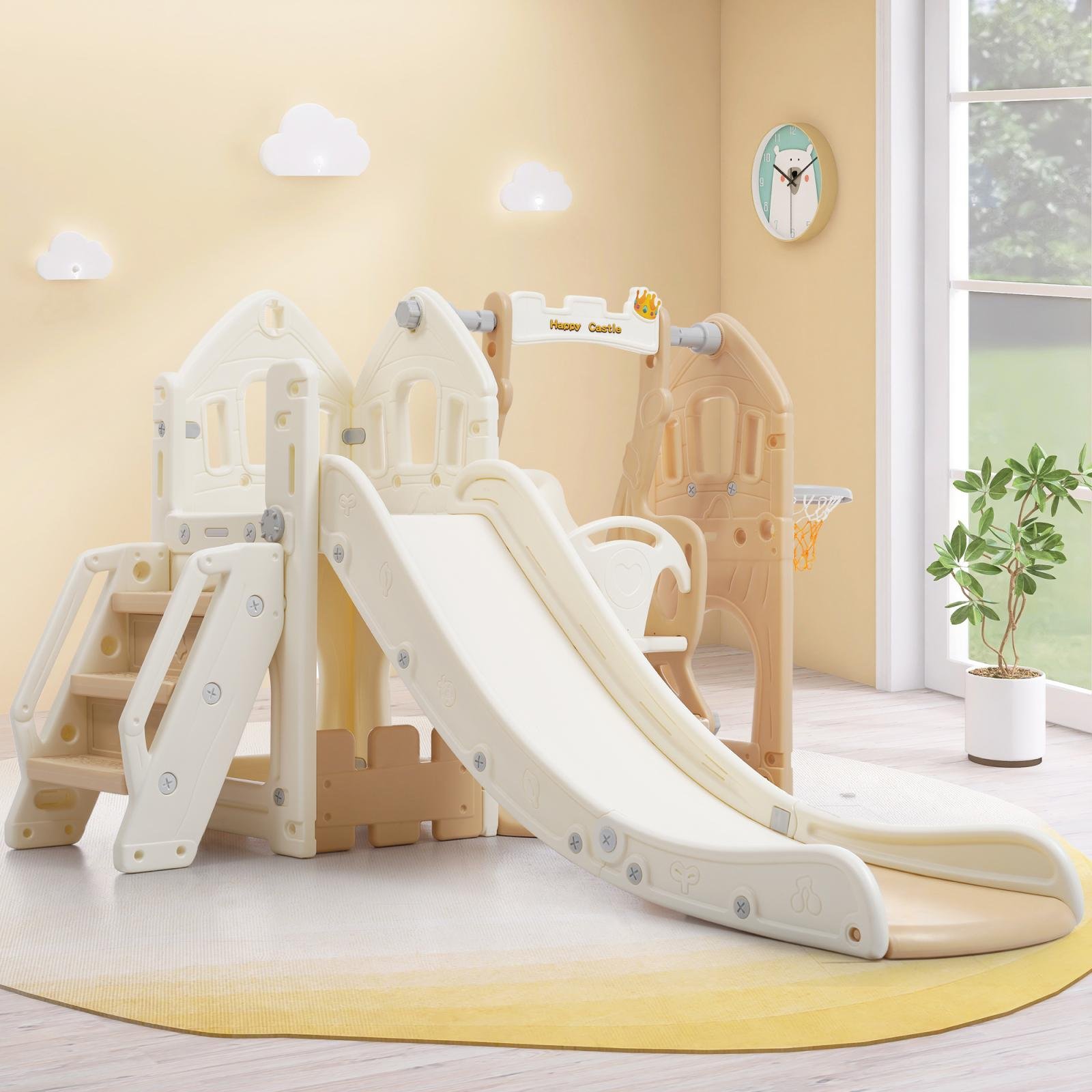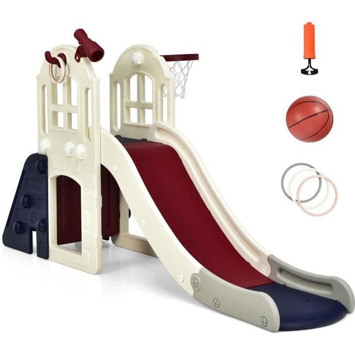 COSTWAY Toboggan pour Enfant 6 en 1 - Glisse de 140 CM 3-8 Ans Toboggan Intérieure & Extérieure Rose