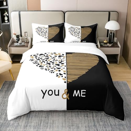 Homemissing Toi et Moi Parure de lit doré Noir Coeur Housse de Couette pour Amoureux Couple Hommes Femmes Romance Housse de Couette 220x240cm 100% Coton Saint Valentin Maison Literie Noir Blanc